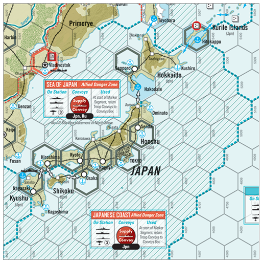 De plus, est inclus dans la boîte Dice of Decision II (DoD), un générateur de campagne aléatoire que les joueurs peuvent utiliser pour créer à l'infini des situations d'histoire alternative fascinantes pour leurs parties d'EA. Et si l'Allemagne avait gagné la Grande Guerre ? Ou si le tsar régnait toujours sur la Russie ? Ou si le traité naval de Washington de 1922 n'avait pas empêché une course aux armements dans le domaine de la construction navale ? Ou si l'invasion de la Mandchourie par le Japon en 1931 s'était déroulée différemment ? Ou si une France agressive avait choisi d'occuper la Rhénanie en 1937 ? Toutes ces possibilités, et bien d'autres encore, sont à découvrir avec DoD.
