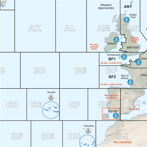 Chaque zone de la carte a une largeur d'environ 885 km. Chaque tour représente un mois d'opérations. Les unités navales représentent deux porte-avions de la flotte, des divisions de deux ou trois cuirassés, quatre à huit croiseurs, des flottilles de 19 à 40 destroyers ou divers autres types de navires. La plupart des unités terrestres du jeu représentent des corps d'armée ou des divisions. Les unités aériennes représentent six à douze escadrons d'avions.