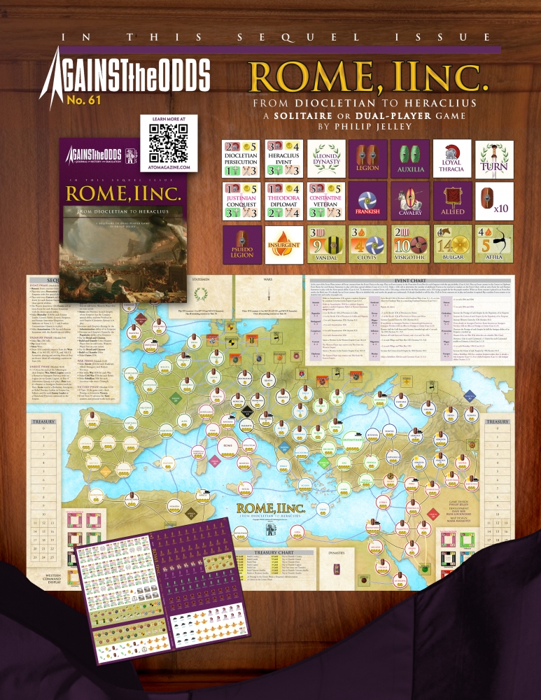 ROME, IInc. est un jeu sur l'Empire romain tardif (la période allant de Dioclétien à Héraclius) pour un ou deux joueurs (en coopération). Suite du célèbre ROME, Inc., vous devrez à nouveau gérer l'Empire romain comme une entreprise, mais cette fois, les barbares sont bel et bien aux portes. Ensemble, les joueurs agissent dans les coulisses, faisant et destituant empereurs, gouverneurs et, à l'occasion, le pape.