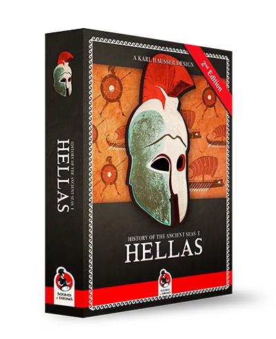 > Cette seconde édition du jeu HELLAS contient des plateaux de jeu à double couche et des règles imprimées en anglais, allemand et français. <