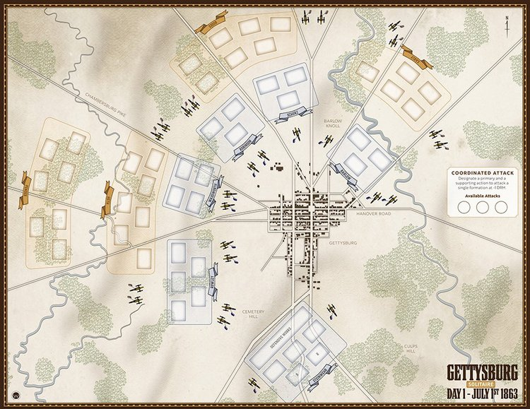Le 1er juillet est le plus facile des deux jours, car vous essayez d'écraser les Ier et XIe corps et chasser l'armée de l'Union de Gettysburg.