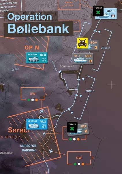 Operation Bøllebank est un jeu en solitaire qui retrace les événements survenus en Bosnie dans la nuit du 29 au 30 avril 1994, lorsque une force blindée de l'ONU composée de chars et de véhicules de transport de troupes de la DANSQN2 a affronté les forces serbes de Bosnie aux abords de la ville de Kalesija, près de la frontière entre la Bosnie et la Serbie.