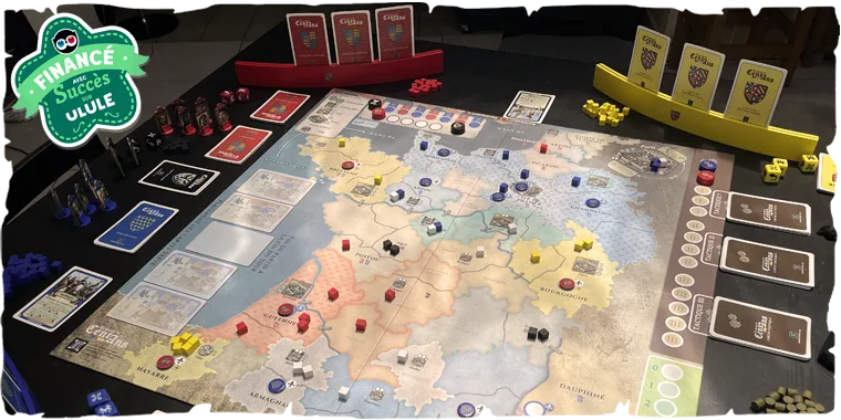 Chevauchées, batailles rangées, sièges, embuscades, pillages, assassinats et trahisons jalonnent cette guerre. C’était donc un défi de simuler cette guerre complexe et non linéaire. D’ailleurs, peu de jeux existent sur ce sujet. Nous avons fait le choix de le concevoir à l’échelle stratégique tout en lui conservant une excellente jouabilité.