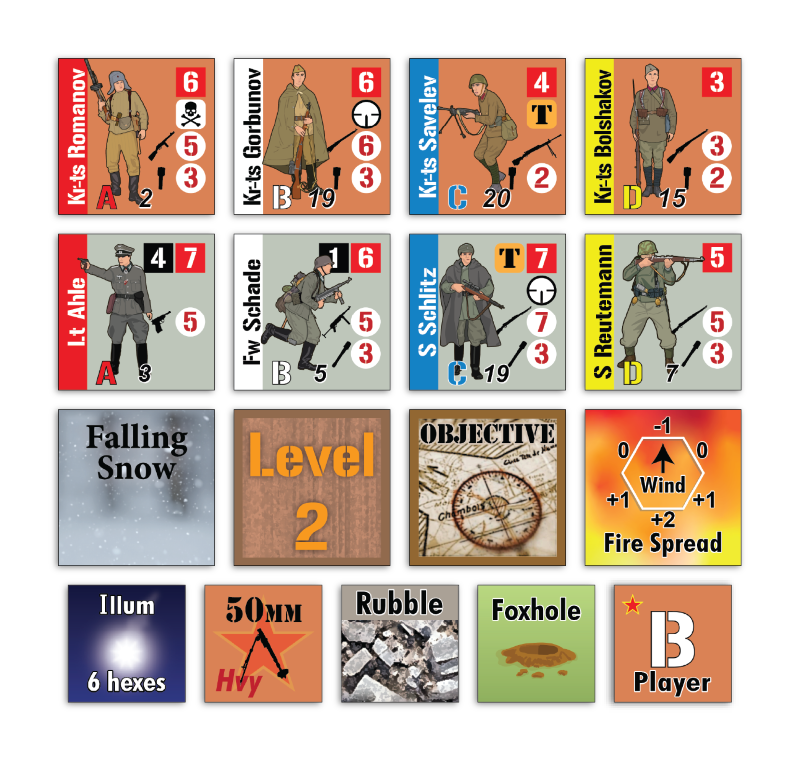 Le jeu propose 11 scénarios palpitants répartis sur 4 cartes, allant de la guérilla forestière aux combats urbains à Stalingrad, en passant par des batailles désespérées dans les steppes. Un générateur de scénarios aléatoires complet élargit encore les possibilités et créera une réserve illimitée de scénarios uniques. De plus, le jeu de campagne inclus permet au joueur de mener une escouade d’hommes à travers 10 batailles.