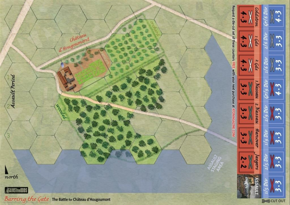Barring the Gate (La porte verrouillée) - Considérée comme une prise facile par Napoléon le matin de Waterloo, la défense acharnée du château d'Hougoumont a fini par détourner et absorber tout un corps d'armée français ! Les combats qui se sont prolongés tout au long de la journée ont complètement fait dérailler les plans de Napoléon, qui comptait anéantir rapidement les forces anglo-alliées avant l'arrivée des Prussiens. La porte est verrouillée, parviendrez-vous à la forcer ?