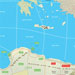 The map covers the entire Mediterranean littoral and Middle East, from Gibraltar in the west to Basra in the east. The live area of the map is divided into land and sea zones, with fortresses and certain islands treated as separate areas-within-areas. Turns represent one month of real time.
