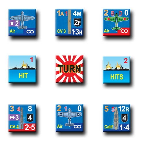 Each counter represents a single ship, or a fighter, dive bomber, or torpedo squadron, each hex is a nautical mile, and each turn is 12 minutes. Ships are rated for main guns, secondary guns, torpedoes, armor, speed, and maneuverability. Hits can cause general damage, start fires, slow a ship, or cause a catastrophic explosion. Simple mechanics and a quick combat resolution keep the game moving.