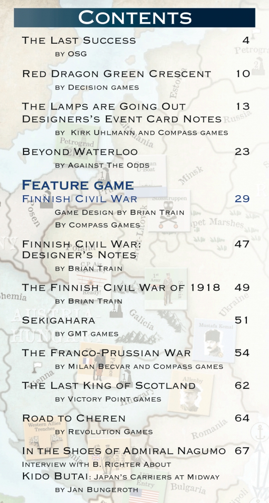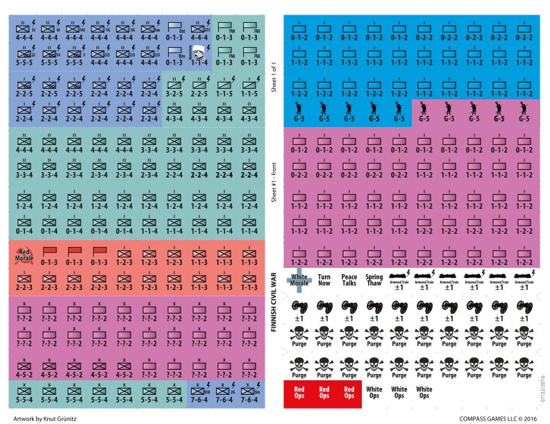 FINNISH CIVIL WAR is a simulation game of the civil conflict in Finland in the early months of 1918. The game is for two players, one representing the recently elected government of the recently independent state (the White player) and the other the perhaps-irresistible forces of proletarian revolution (the Red Player).