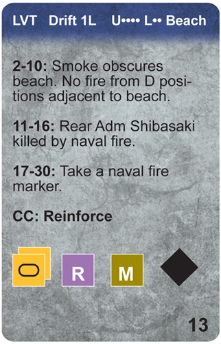 D-Day at Tarawa is a solitaire game simulating the amphibious invasion of Betio Island in the Tarawa Atoll. The US marines assaulting the tiny island, with its strategically vital airstrip, found themselves in their toughest battle of World War II, a fight to the death against 5,000 Japanese defenders.