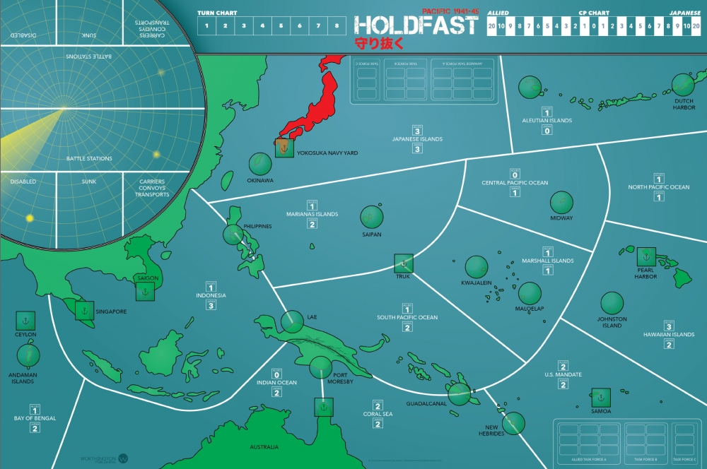HoldFast Pacific has the empire of Japan attempt to control the vast Pacific Ocean. After devastating the United States fleet at Pearl Harbor, the Japanese naval, air and land forces push their conquest across the Pacific. Their only obstacles are weakened Allied forces and time as the Allies recover. Can you as the Japanese player secure a Pacific empire that protects your homeland from your enemies? And as the Allied player can you rebuild your armed forces and mount a counter attack that prevents the Japanese expansion and bring the war to their homeland?