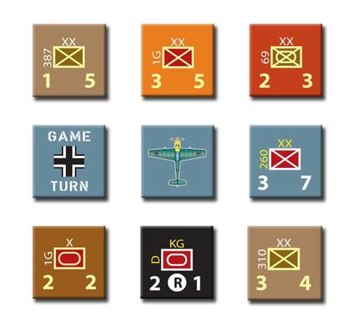 The units of maneuver for both sides are primarily divisions, along with some brigades and one elite regiment. Each hexagon on the map represents 7.5 miles (12 km) from side to opposite side. Each game turn represents a week. The effects of the general air superiority enjoyed by the Germans throughout much of the campaign are built into the movement and combat rules. Soviet units are mostly untried with their exact strengths unknown until the first time the enter combat; however, their elite Guards divisions all have two steps and known strengths.