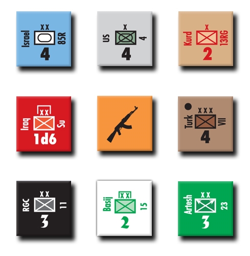 Further, the entirely playable on its own, Isis War can also be played as an expansion and update of my earlier design, Oil War: Iran Strikes. See the note below.