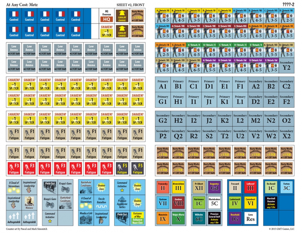 At Any Cost: Metz 1870 also features the Blind Swords chit-pull system which emphasizes the three “FOW’s” of military conflict: fog-of-war, friction-of-war and fortunes-of-war. With each chit pull, players will be challenged to make tough decisions based on their assessment of the current situation. Unlike traditional chit-pull mechanisms, the Blind Swords system ensures that no combat units can be counted on, or conversely, counted out. This yields an environment of tense action and constant surprises – an environment that will challenge each player.