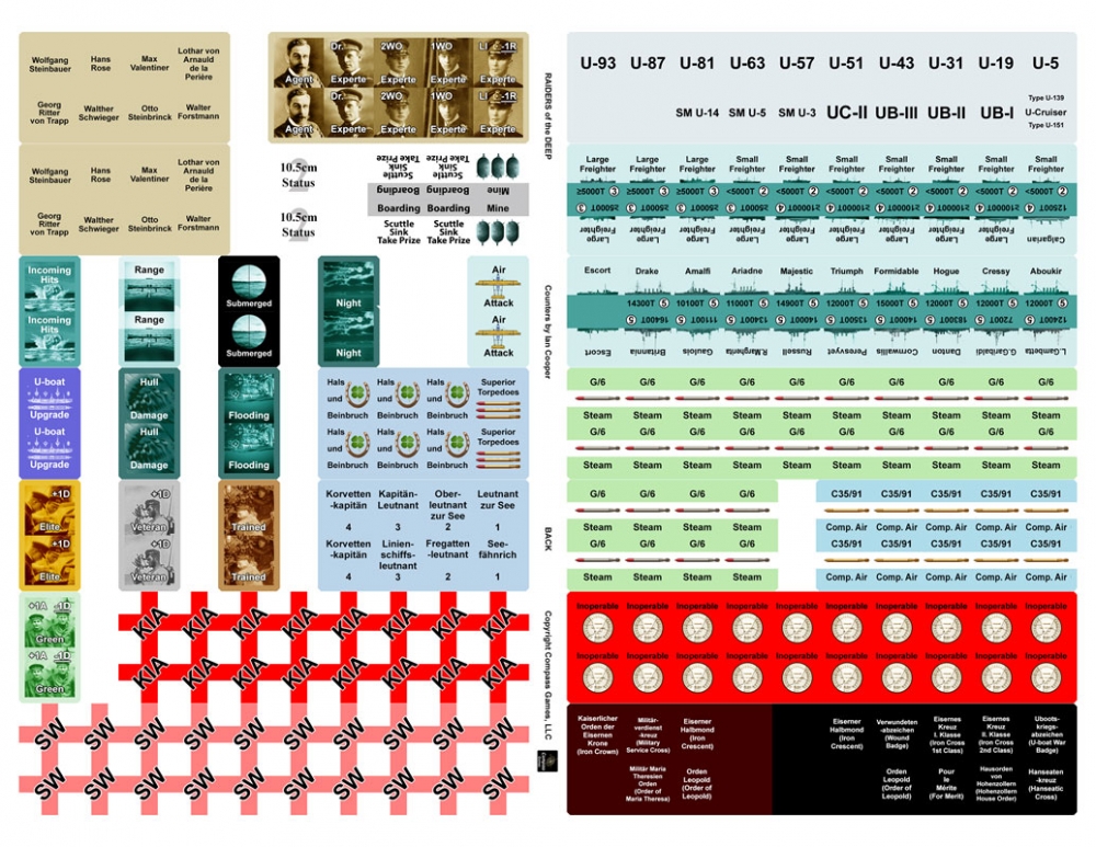 This game is highly accessible to those familiar with The Hunters or Silent Victory designed by Gregory M. Smith (published by Consim Press). Game designer and WWI historian, Ian B. Cooper, answers the call of many who have asked for the same dynamic and tense gaming experience covering The Great War. While Raiders of the Deep is designed as a solitaire gaming experience, additional options for play are provided for both multi-player gaming sessions and organized tournament play.