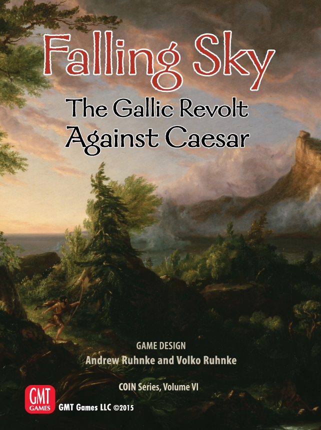 Falling Sky : The Gallic Revolt Against Caesar (formerly Gallic War) takes 1 to 4 players into the military actions and complex politics of Roman-occupied but not-yet-conquered Gaul. Caesar and his hard-hitting legions cannot be everywhere and will not triumph without powerful allies among local tribes. But each Gallic confederation has its own agenda and must keep its eyes not only on the Romans but also on Celtic, Belgic, and Germanic rivals. Players recruit forces, rally allies, husband resources for war, and balance dispersed action with the effectiveness and risk of concentrated battle.