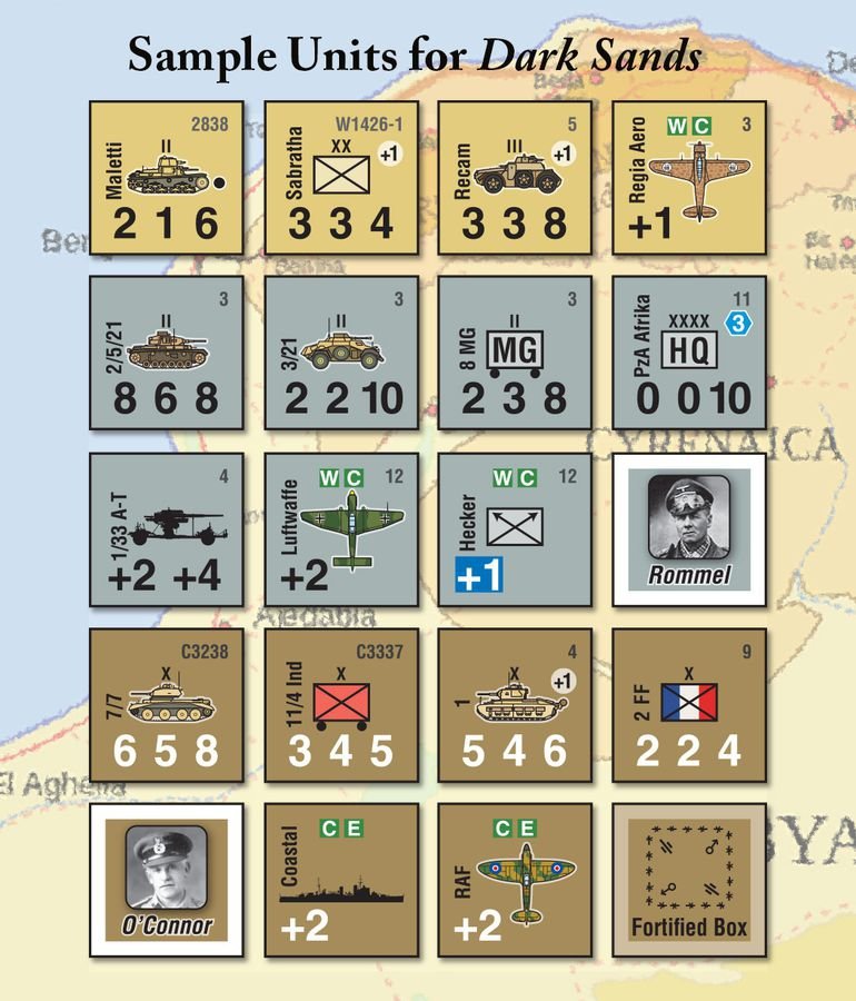 The Dark Sands takes the game system from Ted S. Raicer’s sold-out and critically acclaimed The Dark Valley: The East Front Campaign to the legendary battles of North Africa in WWII. From the most successful British armored operation of the war, Operation Compass, to the climactic battle two years later at El Alamein, The Dark Sands breaks new ground in portraying the campaigns of the British 8th Army and Rommel’s Afrika Korps.