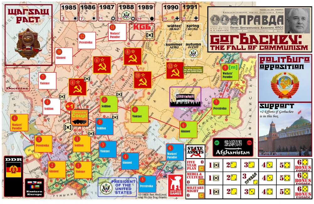Gorbachev: The Fall of Communism is a solitaire strategy game covering the collapse of the Soviet Union (1985-91), designed by R. Ben Madison.