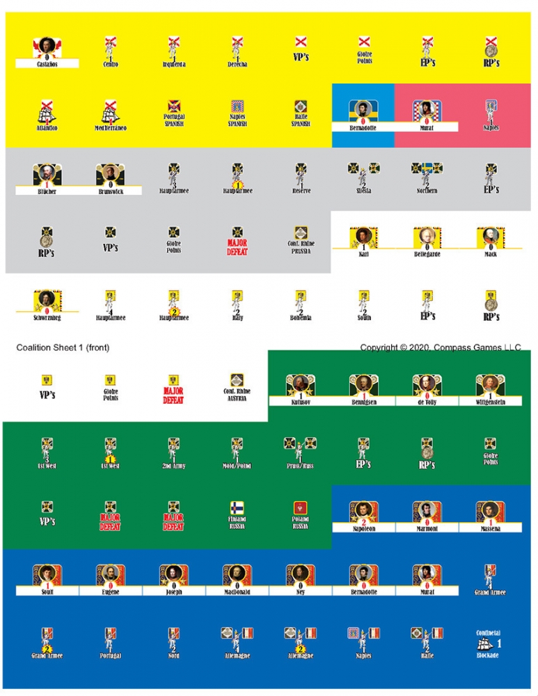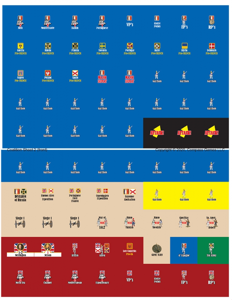 COALITION! is a game about the Napoleonic Wars (1805-1815) for two to six players that can be completed in a single evening. The scope of the game is grand-strategy with some operational components (as the execution of maneuvers as Marching to the Sound of the Guns), being the British player launching successive Coalitions to destroy France and his Empire. You will remember and reenact this flamboyant period handling historical Generals, Armies, Fleets and Event Cards. Prepare to fight from Austerlitz to Waterloo in just one evening!