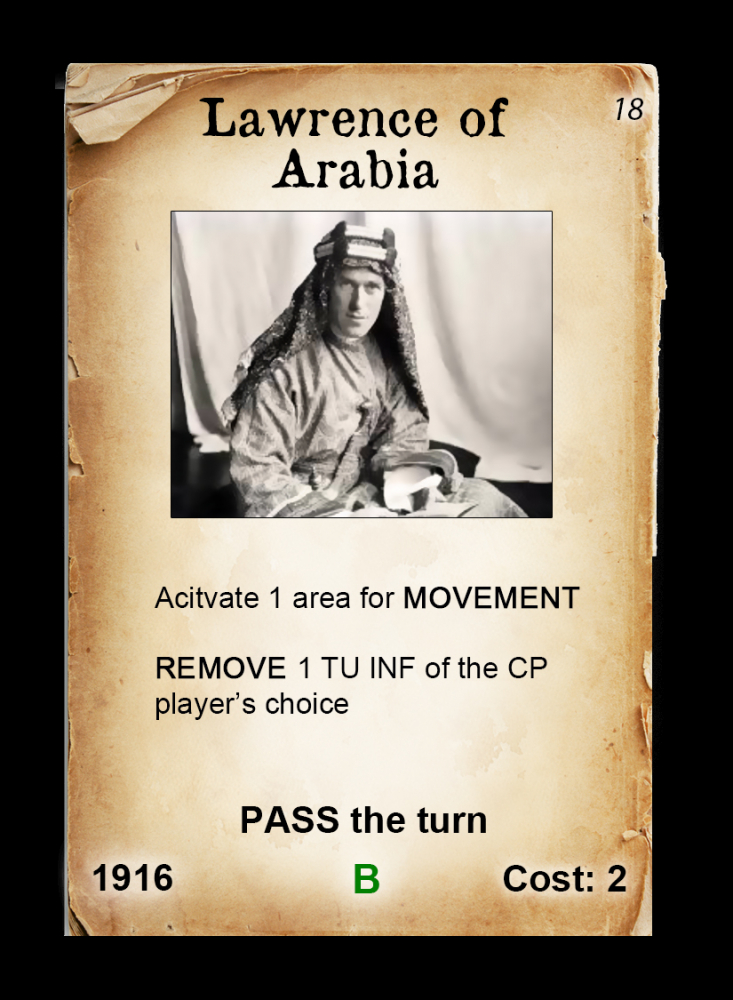 Besides the focus on card play, the game features a small footprint (one standard map) and also is designed to be played in just a single evening – estimated at 3 hours for experienced players to fight the entire war.