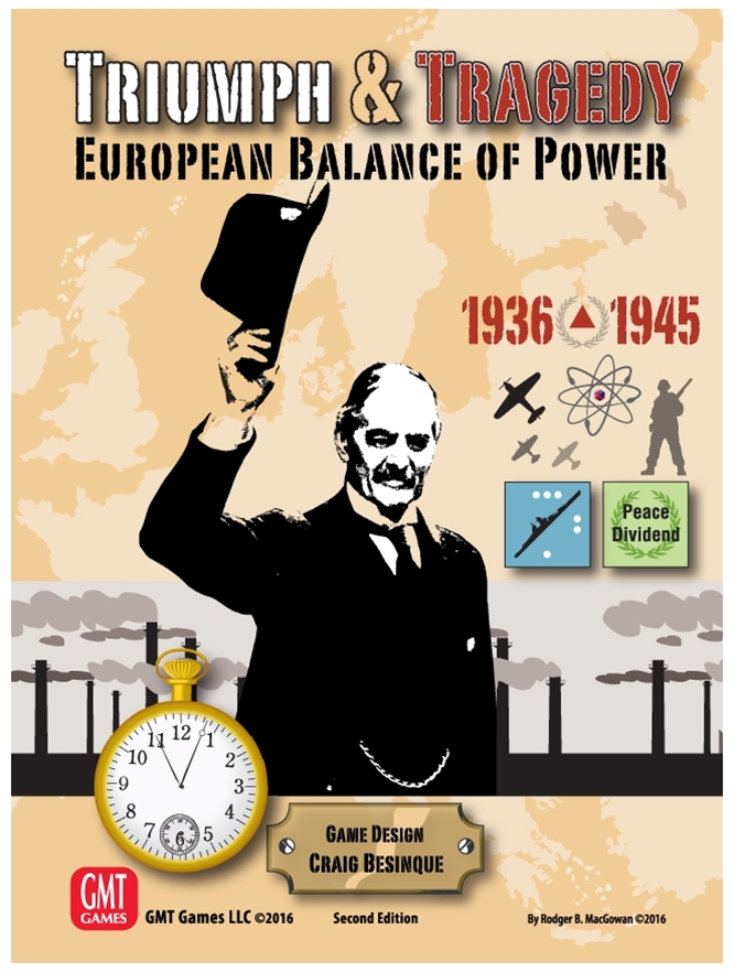 Triumph and Tragedy is a geopolitical strategy game for 3 players (also playable by 2) covering the competition for European supremacy during the period 1935-45 between Capitalism (the West), Communism (the Soviet Union) and Fascism (the Axis). It has diplomatic, economic, technological and military components, and can be won by gaining economic hegemony or technological supremacy (A-bomb), or by vanquishing a rival militarily.
