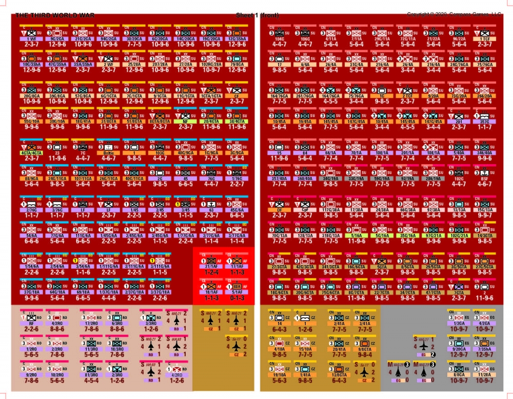 Color-coding on Warsaw Pact ground unit counters for ease in distinguishing army designation