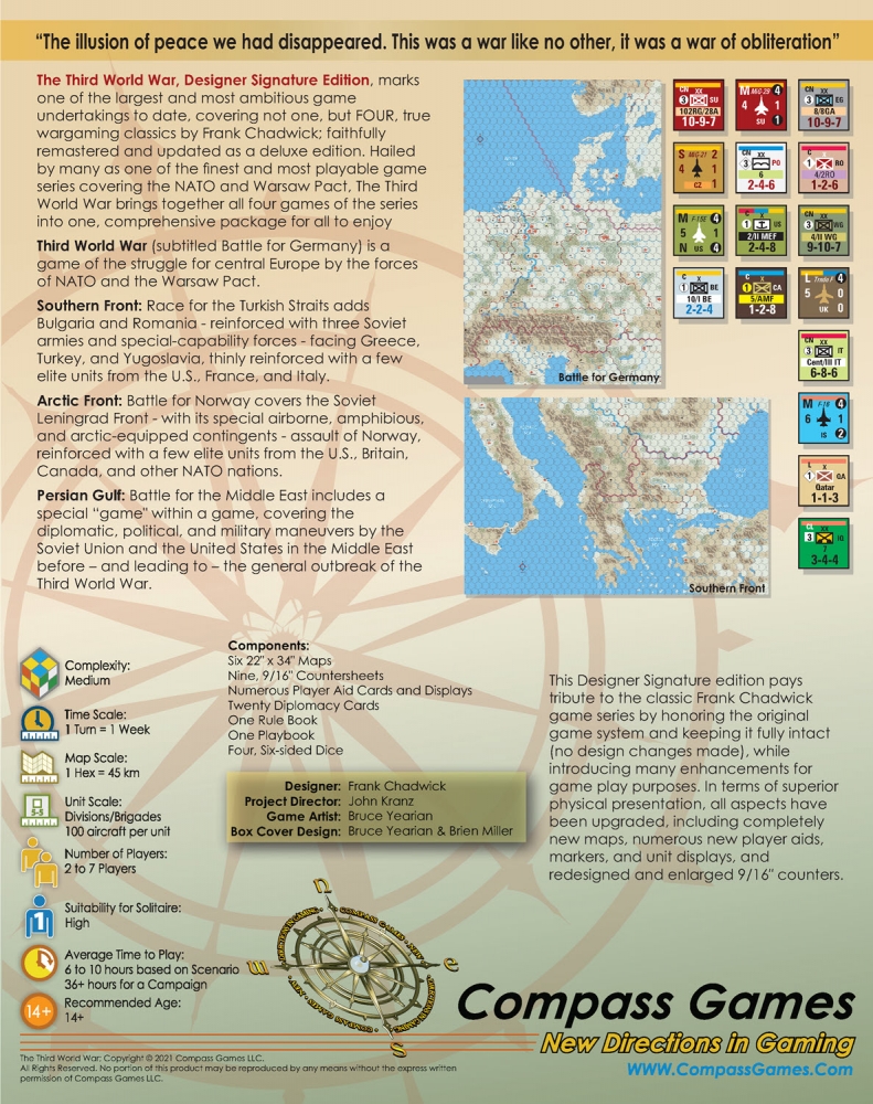 This edition of The Third World War features many new enhancements and larger counters and is another Classic Reborn! by Compass.