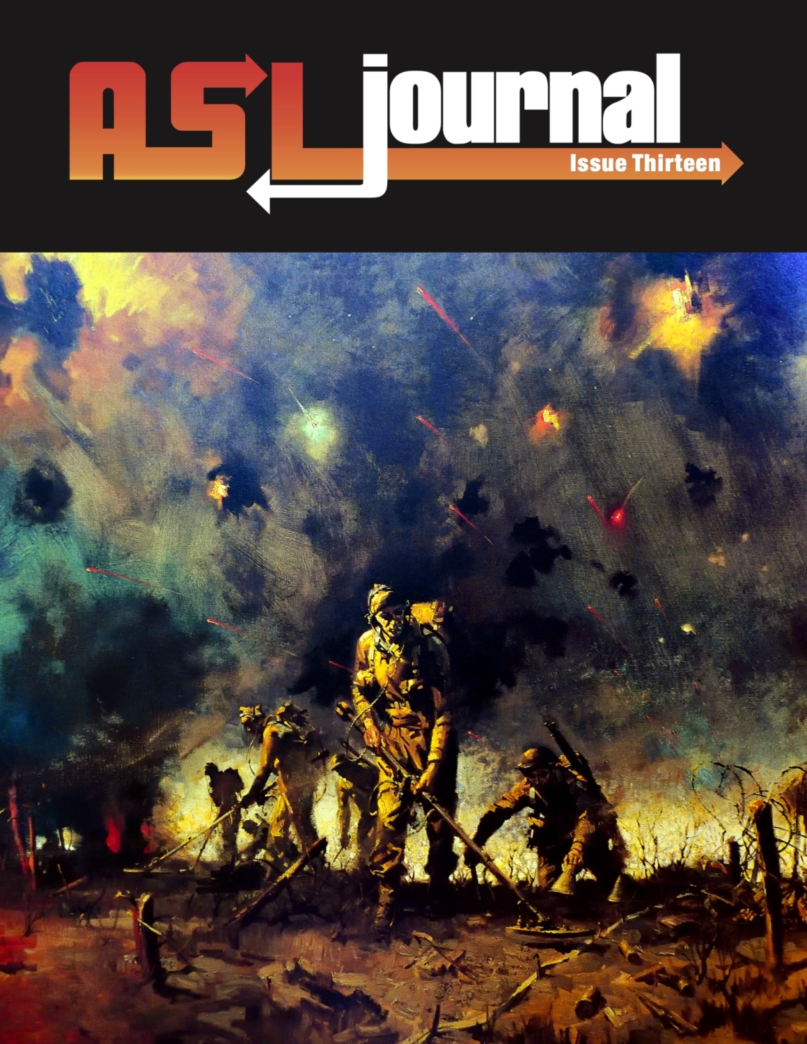 ASL Journal 13 is a 52-page magazine for Advanced Squad Leader and features articles, the latest errata and scenario updates in the Debriefing, 33 new scenarios printed on cardstock (including four “pocket” scenarios, with the map board included on the card), ASL board 77, and overlay X20 (to replace the version that came in the ASL Overlay Bundle).