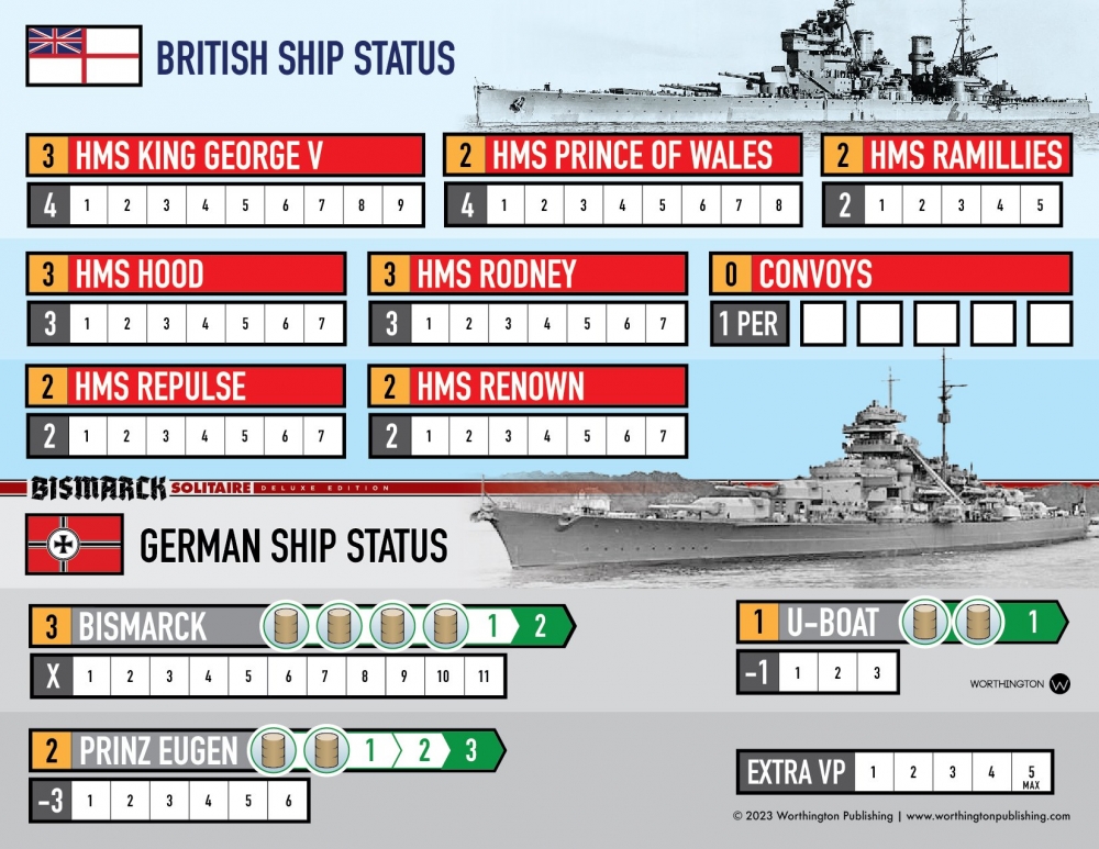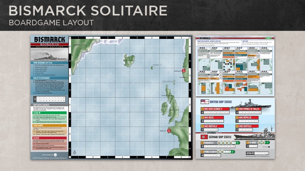 Bismarck Solitaire board game is based on the very popular bestselling Bismarck Solitaire Bookgame.