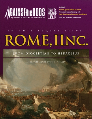ROME, IInc. is a game of the Late Roman Empire (the period from Diocletian to Heraclius) for one player, or two co-operating players. A sequel to the popular ROME, Inc. you again will be running the Roman Empire like a business, but this time the barbarians are well and truly at the gates. Together the players operate behind the scenes, promoting and removing emperors, governors, and the occasional pope.