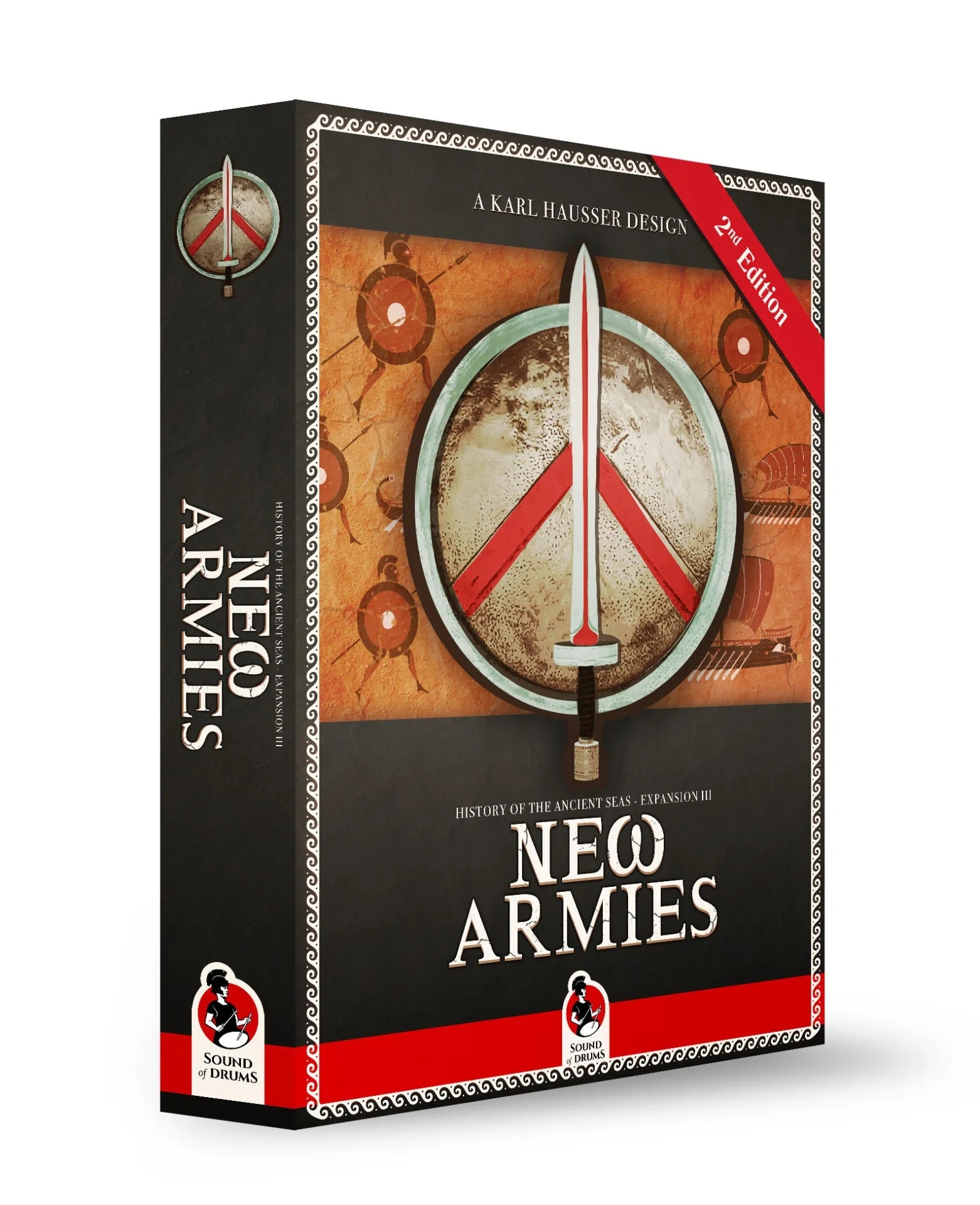 With the expansion “New Armies” players will replace the wooden playing pieces in the three games by wooden blocks that will provide a huge amount of fog of war to the game. Fully colored stickers of Ships and Legions are put on top of the blocks. On the back there are stickers of their strength. Information of strength will only be revealed at the moment of combat.