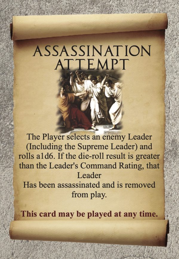 Seventeen historical scenarios range from the 2nd Punic War through the attempted reconquest of the lost Western territories by Justinian in the mid-6th century A.D. The rivalries of the later Republic, the Year of the Four Emperors, Imperial expansion and civil war, the Parthian and Persian frontier, the upheaval of the third century and the Germanic invasions are all represented. Three hypothetical scenarios are also included in which players can create their own history. Of the twenty scenarios in Roma Victrix, two are ideally suited for solitaire play.