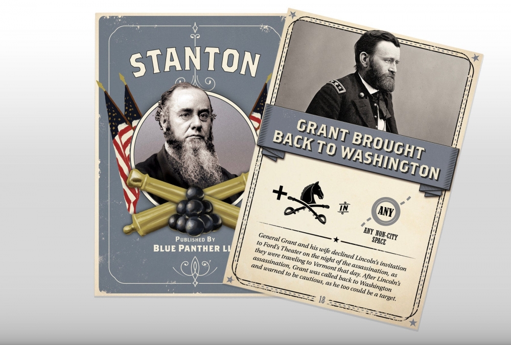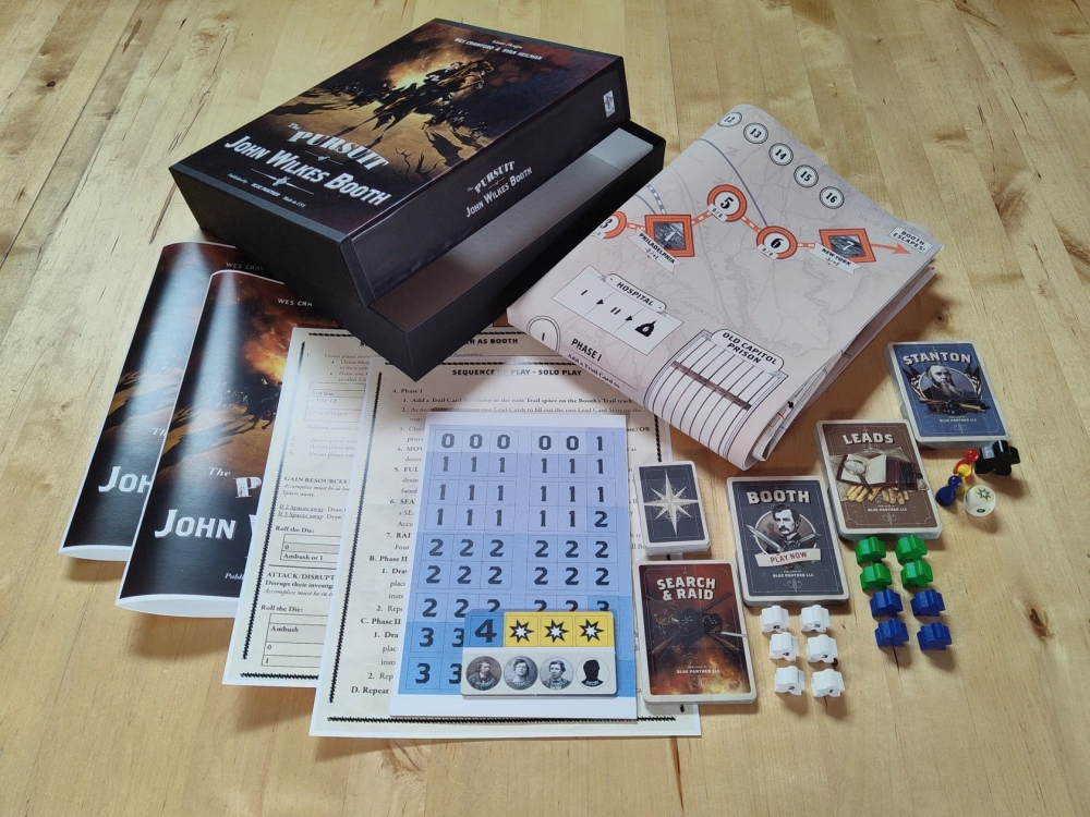 The Pursuit of John Wilkes Booth is a game of deduction and investigation. Players step into the roles of Detectives, tasked with capturing the assassin. Union authorities were uncertain of Booth’s destination. As Detectives, players must follow Leads, uncover Clues, and piece together Booth’s Trail as he evades capture. Players can enlist Secretary Stanton’s assistance to aid in their mission. Ultimately, Detectives must pinpoint Booth’s exact location by executing a successful Search, and then Raid to either capture or kill him.