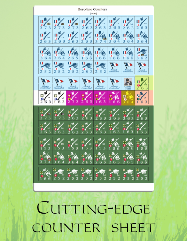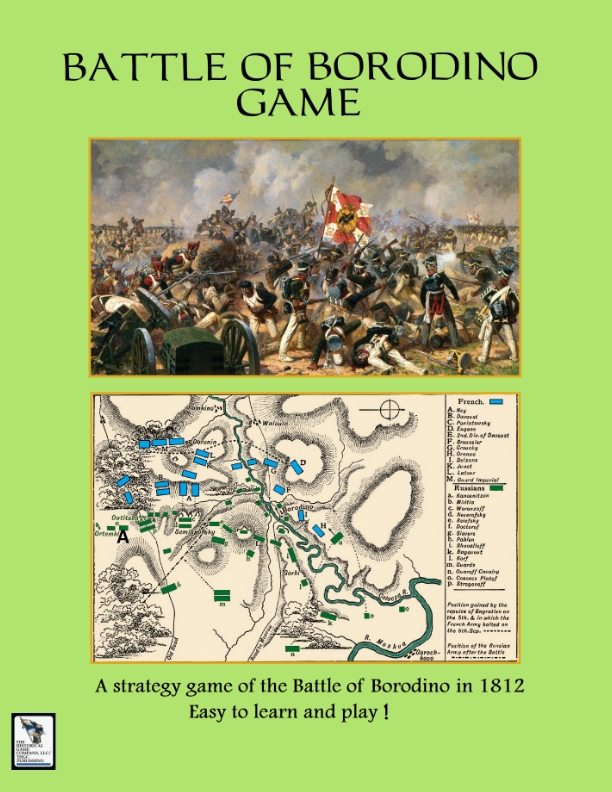 The Battle of Borodino is a low-to-moderate complex tactical game covering the most important battle of Napoleon's Russian campaign in 1812. The game takes about 90 minutes to play. One player commands the Russian forces and the other player commands the French forces. Cards vary game play.
