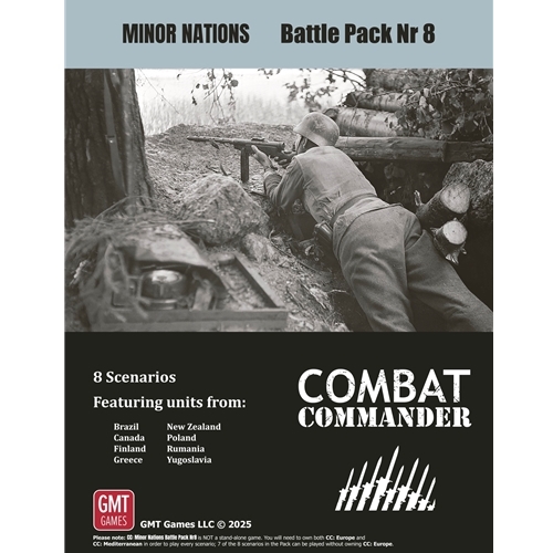 Combat Commander Battle Pack #8: Minor Nations is for owners of Combat Commander: Europe and Combat Commander: Mediterranean who want the new minor nations counters and scenario pages but don't want to purchase the Combat Commander: Europe/Med. 20th Anniversary Edition.