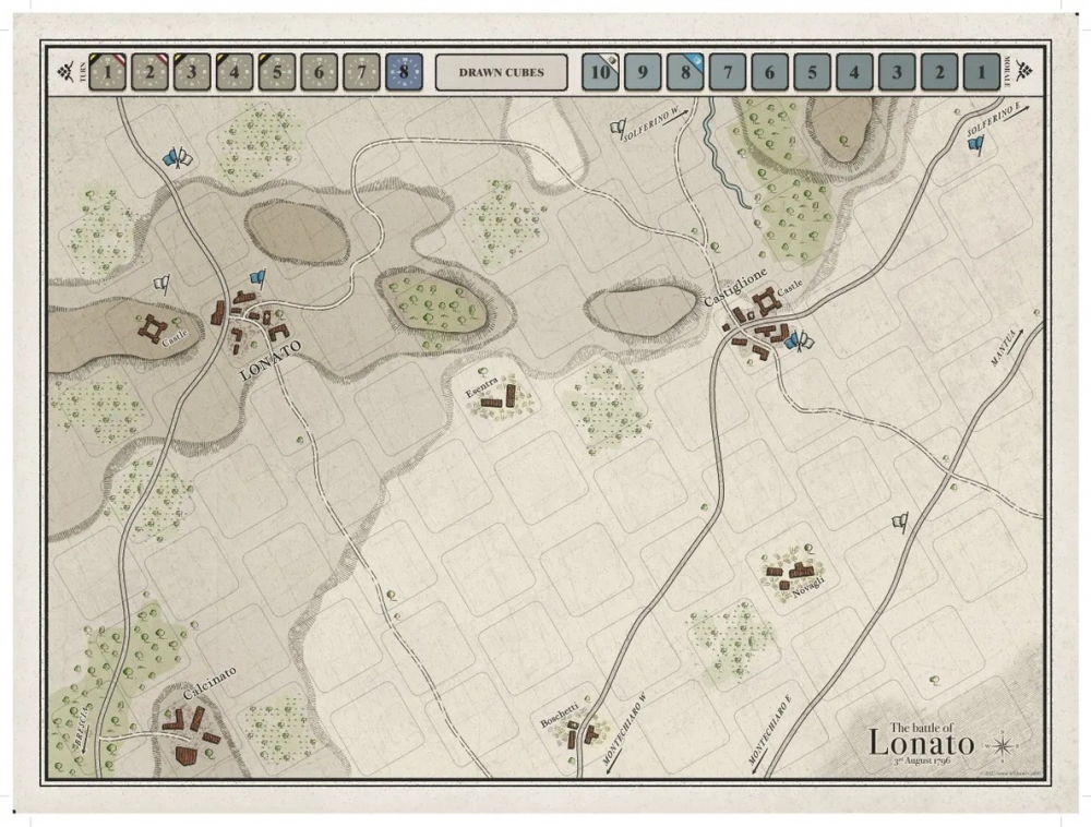 Cube-pull activation is used to manage game phases (movement, combat, rally, card draws etc.), and cards for the interactive combat system and events, allowing for a myriad of possibilities and solitaire-friendly gaming. No dice, no complex odds counting, no markers, no play downtimes, no sure thing!