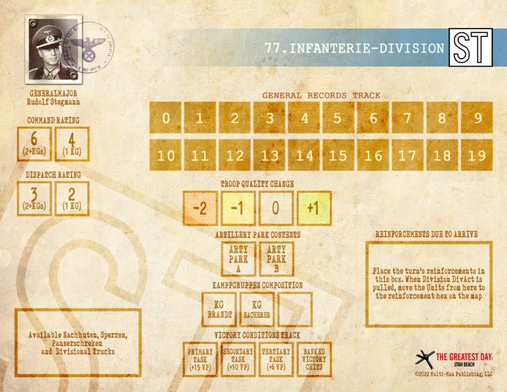 Multi-Man Publishing est fier de présenter ses hommage aux hommes courageux d'antan, qui ont combattu à Utah Beach et dans les haies de la péninsule du Cotentin. The Greatest Day: Utah Beach comprend un large éventail de scénarios allant des débarquements sur la plage aux troupes aéroportées qui doivent s'emparer de Carentan, en passant par la coupure de la péninsule du Cotentin. Sont proposés de petits scénarios utilisant des cartes de de 21x28 cm jusqu'à des campagnes complètes s'étendant sur toute la péninsule.