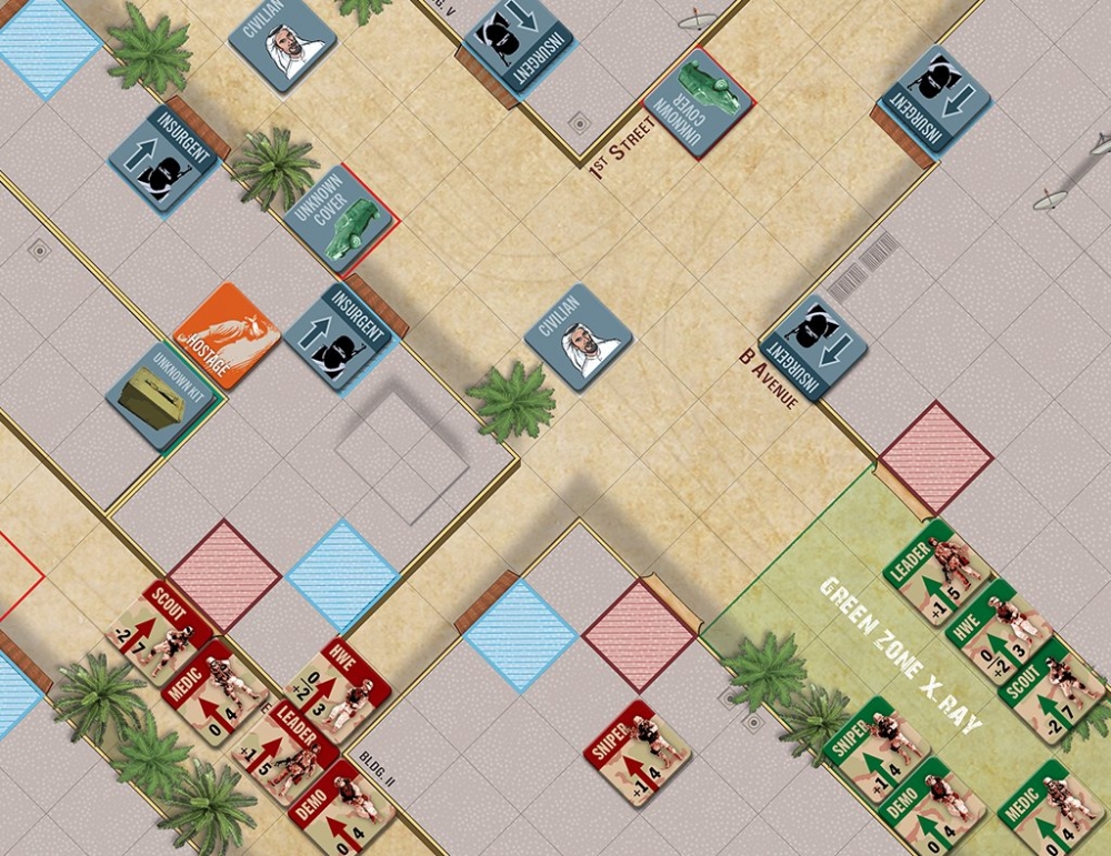 Boots on the Ground Deluxe est un jeu pour 1 à 3 joueurs basé sur la guerre urbaine moderne. Jouable en 30 à 60 minutes. Pour le jeu en solitaire ou en coopération, le jeu est accompagné d'un bot piloté par des cartes.