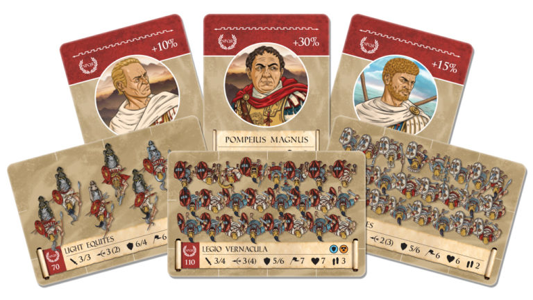 CONTENU : Les généraux Pompeius Magnus, Metellus Scipio, Pompeius Iunior et Sextus Pompeius, 6 mules de Marius, 6 Antesignani, 2 Veterani, 2 Legio Vernacula, 4 Tirones, 2 Equites Consulares, 3 Equites légers, 2 infanteries numides, 1 éléphant numide, 2 Scutati ibériques, 2 frondeurs rhodiens, 2 cavaleries numides et 2 cavaleries thessaliennes.