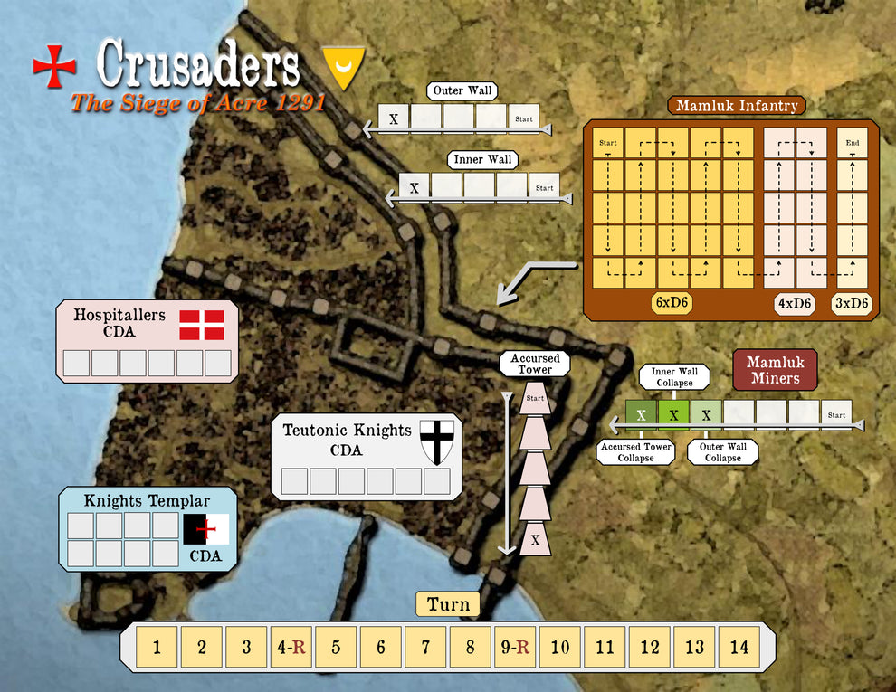 Plongez dans l'histoire et l'héroïsme avec Crusaders : The Siege of Acre 1291, un jeu en solitaire qui vous permet de vivre le dernier combat des Templiers et des Croisés en Terre Sainte.
