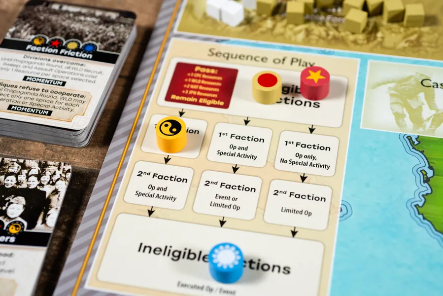 À l'aide d'actions militaires, politiques et économiques et en exploitant divers événements, les joueurs constituent et manœuvrent des forces pour influencer ou contrôler la population, extraire des ressources ou atteindre les objectifs de leur faction. Un jeu de cartes régit l'ordre des tours, les événements, les vérifications de victoire et d'autres processus. Les règles permettent de gérer des factions non jouées, ce qui rend possible les parties en solitaire, à deux ou à plusieurs joueurs.